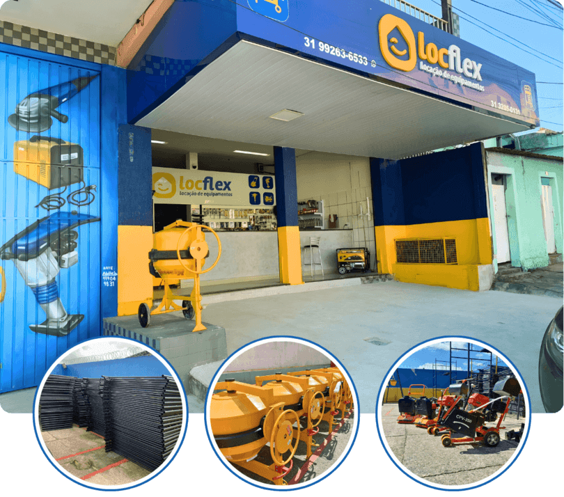 A Locflex atua há mais de 5 anos no mercado, oferecendo equipamentos de alta qualidade para construção civil. Com unidades em Contagem e Ribeirão das Neves, atendemos toda a região metropolitana de Belo Horizonte com agilidade, confiança e compromisso.